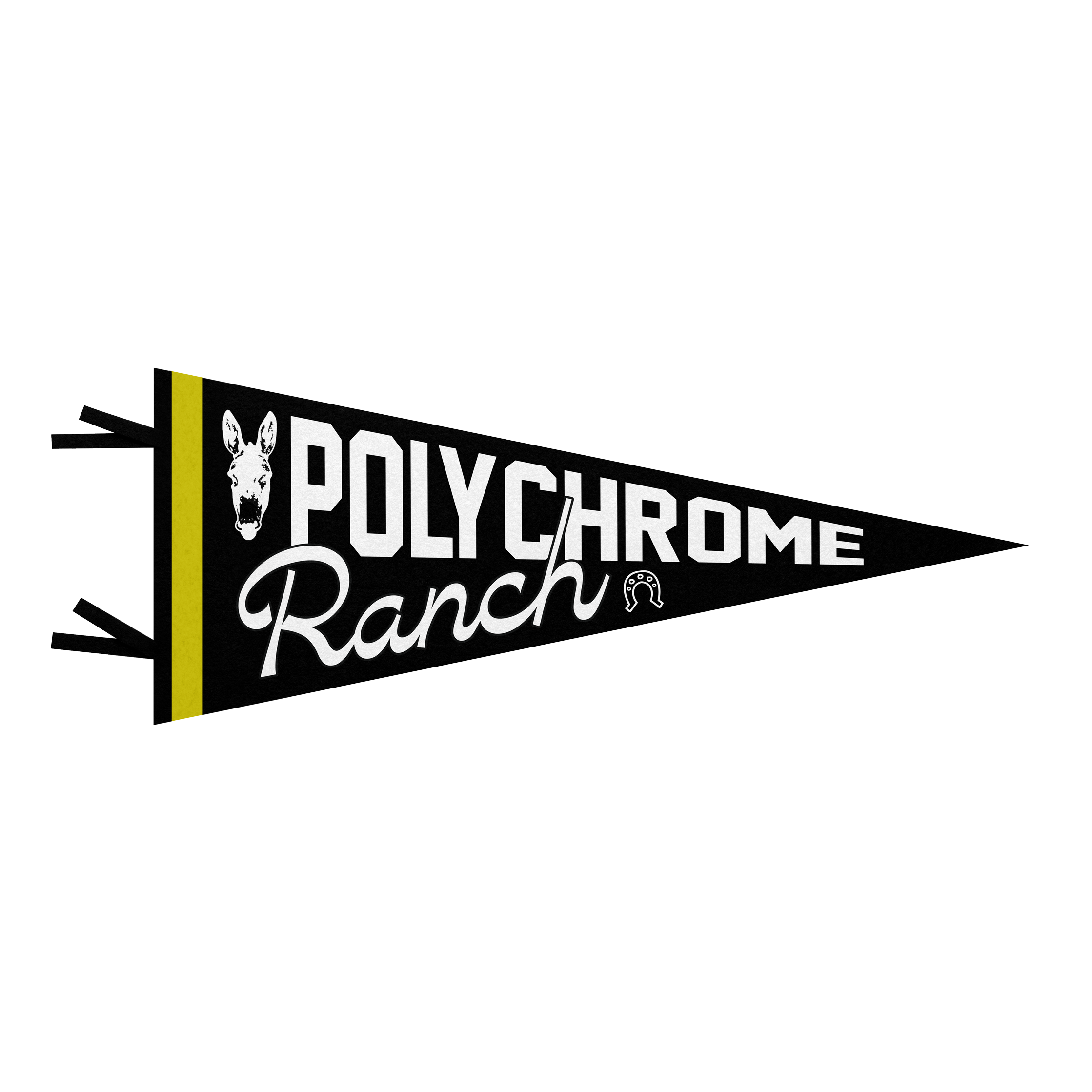 Black felt custom pennant 12 inches long by 5 inches high, with bright gold trim and white ink.